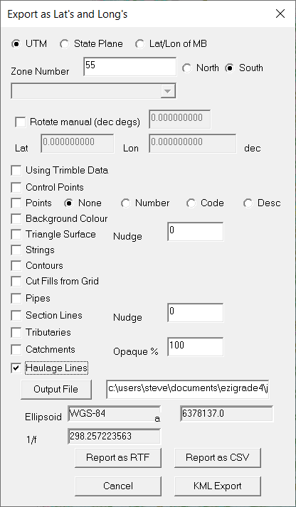 We have a Google Earth export as it should be handy to take your Android Tablet out in the field to check things before bringing in the heavy machinay. Once the haulage arrows are displayed you can click on Export -> Google Earth and you have the following dialog: