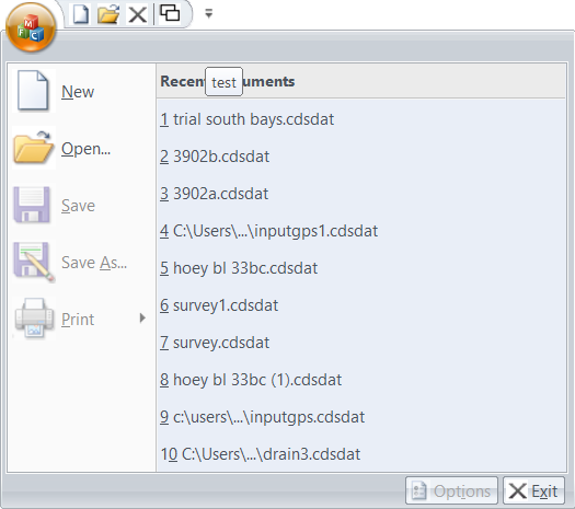 This express menu gives you access to the File -> New, File -> Open and the most recently used jobs "MRU". You can simply click on an existing MRU item and the job is opened immediately.