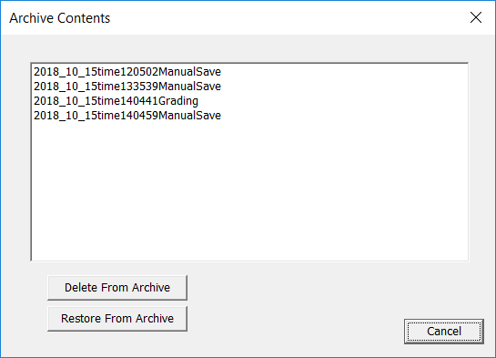 Clicking on the Archive prompts you to browse to an archive file. This file is created at certain times by Ezigrade:
