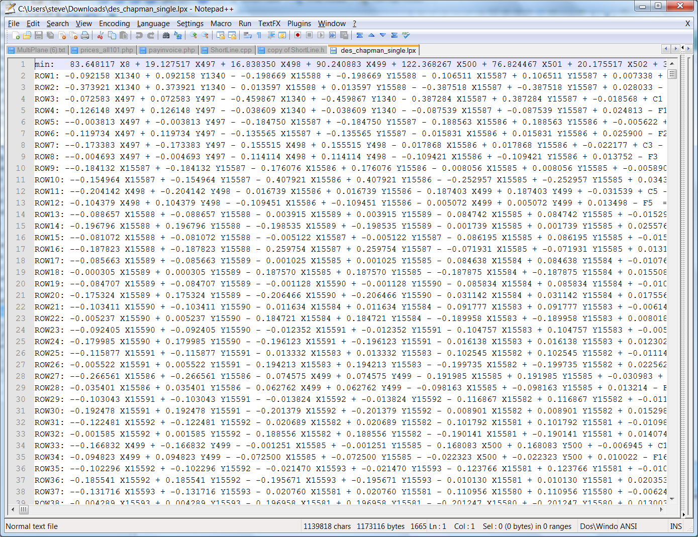 In the LP model we then create a series of constraining equations based on the cut and fills of each line created along the edge of the triangles. We also add in some additional constraints. In the screen shot below we can see a typical solution. Each X and Y represents a cut and fill at each point.