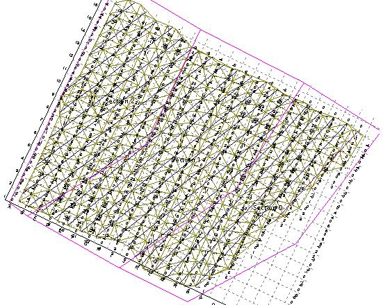 This displays a plot of the points, grids and sections making up the field. The elements which are displayed within this plot are controlled from the View menu. The individual elements that can be displayed are: