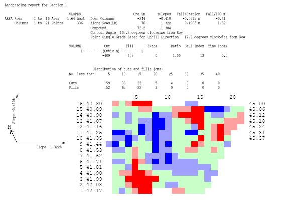 As well as Word or Excel reports; Ezigrade can also produce two different types of printouts / plots directly to any windows supported printer or plotter. The first printout is simply a printout of what is displayed upon the screen. ie a plot showing points, heights, grids, field definitions etc. The second printout is more of a report and shows a cut/fill report for the section nominated or for the whole field. If you are using the "Partial Land Grading" option then we suggest you create reports as you go from within the "Set Min Max Grades Dialog".