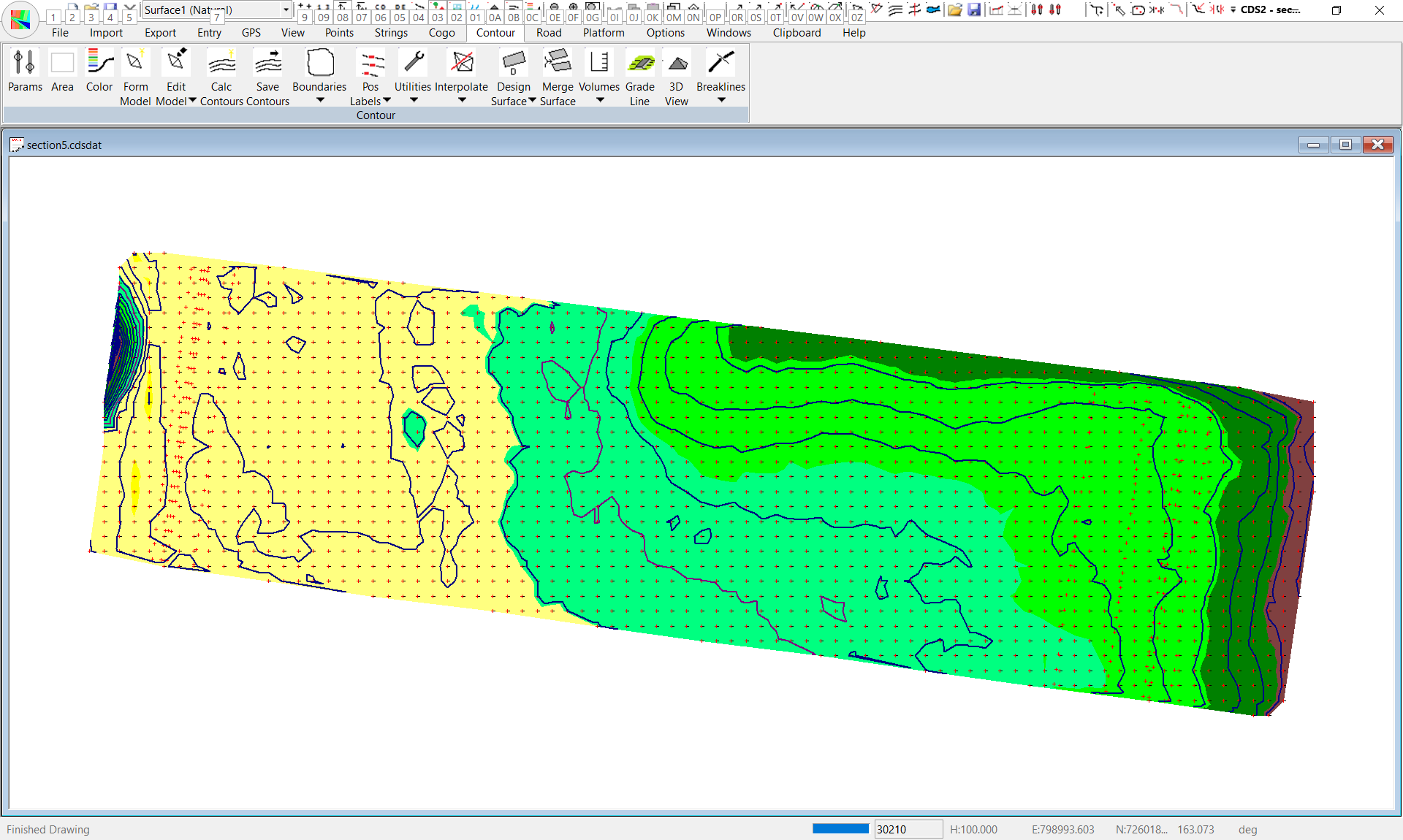 We have calculated the 5 lines that represent the right edge of the table drain, the left edge of the section, the right edge of the section, the start of the sill and the left edge of the head ditch. As mentioned above you are certainly able to design this in Acad if you are more familiar with it; and import the design into CDS.