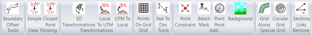 Use this option only when we have a circular pivot job. This is still in Beta. When running this routine we are prompted for a new file name and a new job is created. The existing bench marks, pivot point and boundary points are automatically included. Boundary points need to have a code of "B" set. Additionally extra points are created every 10 meters from the centre as well as every 10 degrees in rotation. Though not essential for working with pivots we suggest creating a new job with this routine. We need extra points near the center to avoid numerical issues. We need smaller triangles at the center to make the grades work.