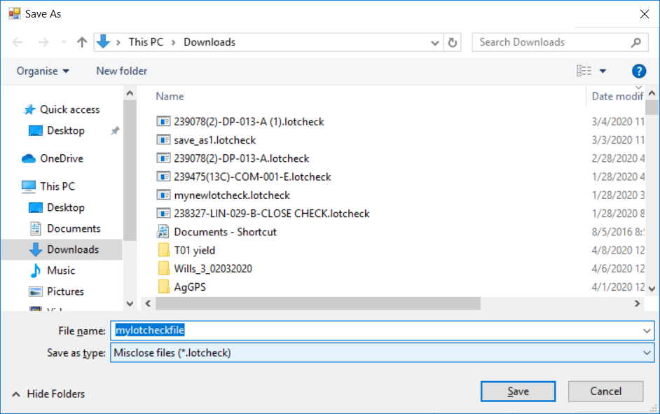 The Misclose App is associated with a file with an extension of *.lotcheck. However it also works upon a dwg file which is associated with the lotcheck file.